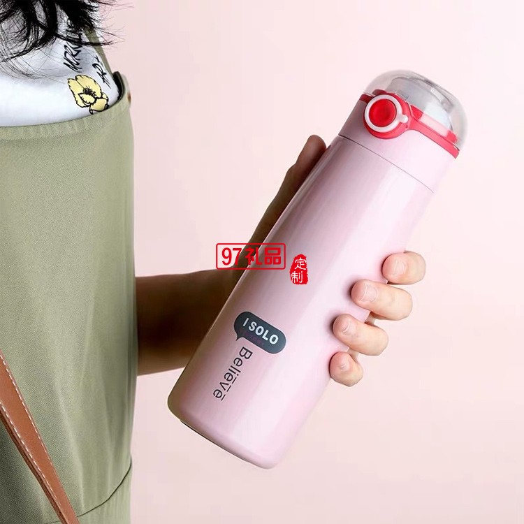 新款304不銹鋼保溫杯女學生彈跳杯戶外韓版水杯可定制logo