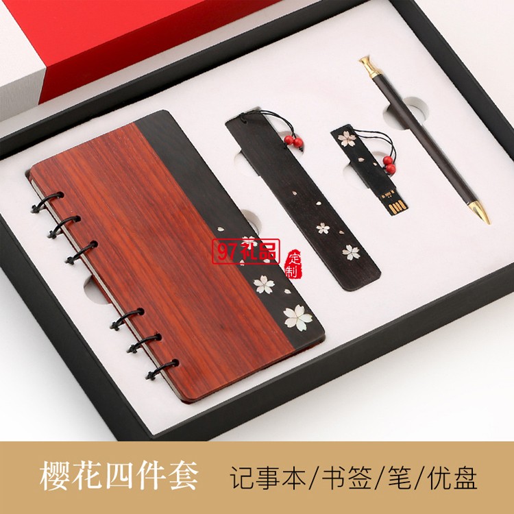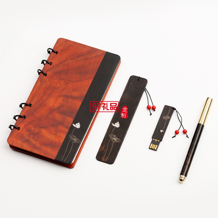 紅木質(zhì)古典黃銅金屬簽字筆記事本U盤套裝文創(chuàng)禮品
