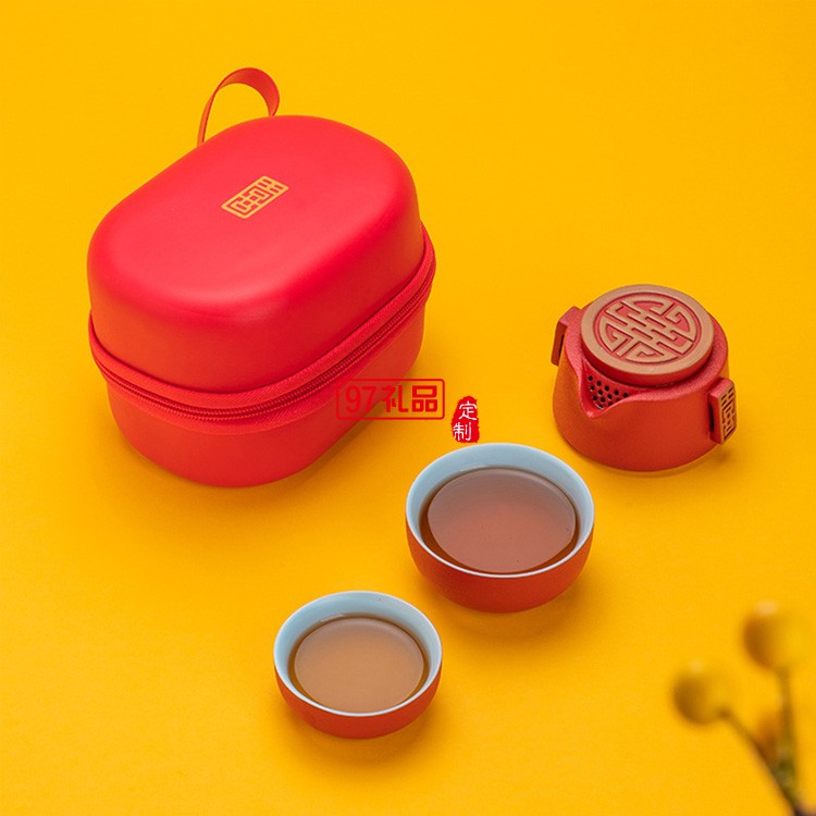 創(chuàng)意喜氣東來快客杯陶瓷茶具便攜式旅行茶具套裝禮品定制商務(wù)禮盒