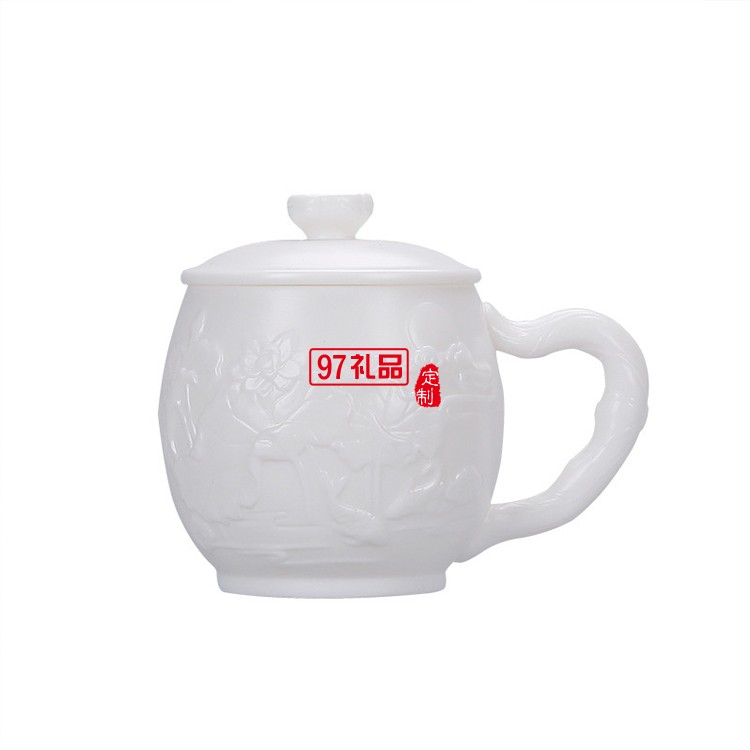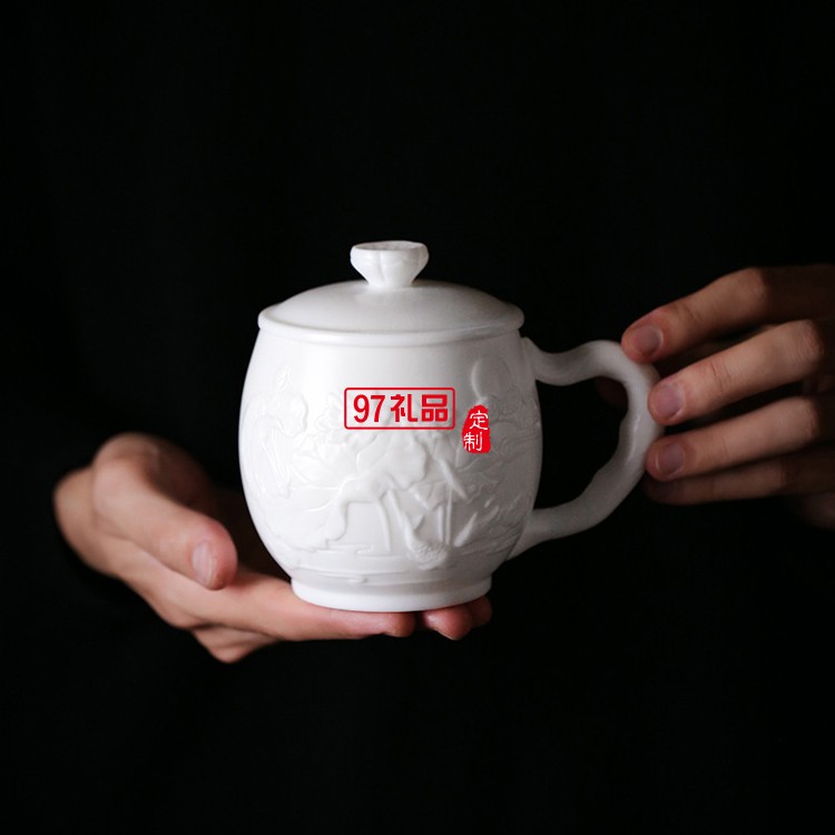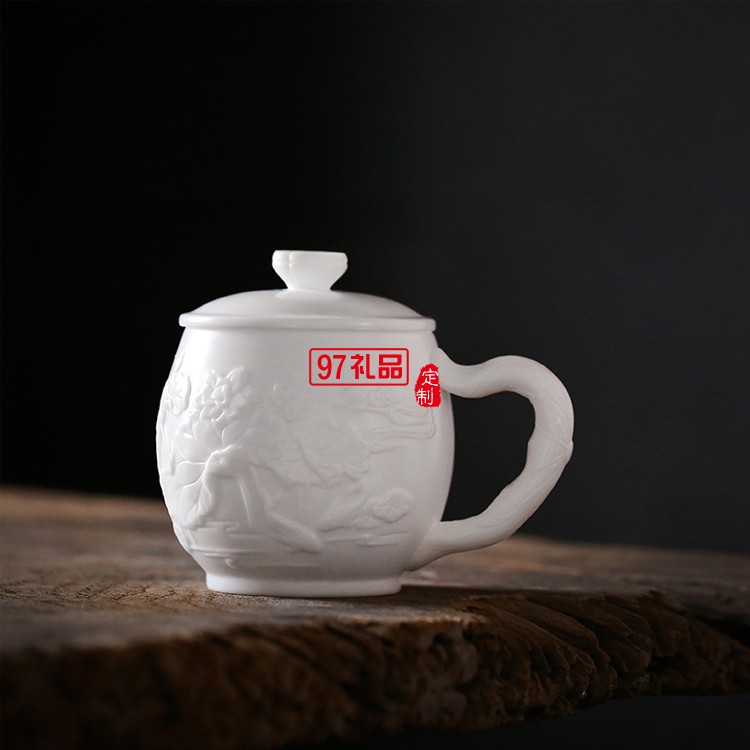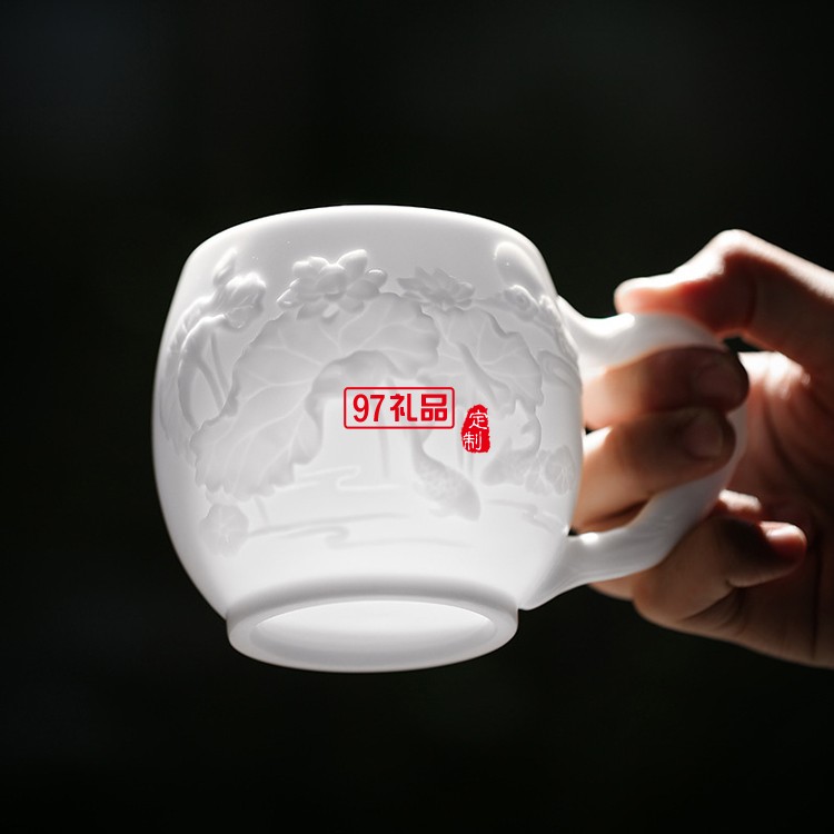白瓷主人杯創(chuàng)意浮雕茶杯羊脂玉茶具高檔個人水杯一件logo刻字
