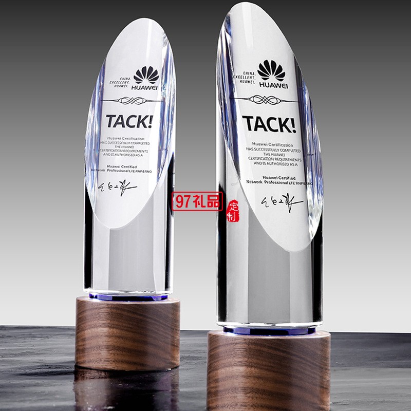 水晶圓柱斜面實(shí)木底座獎(jiǎng)杯獎(jiǎng)牌定制LOGO