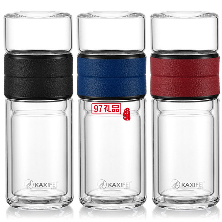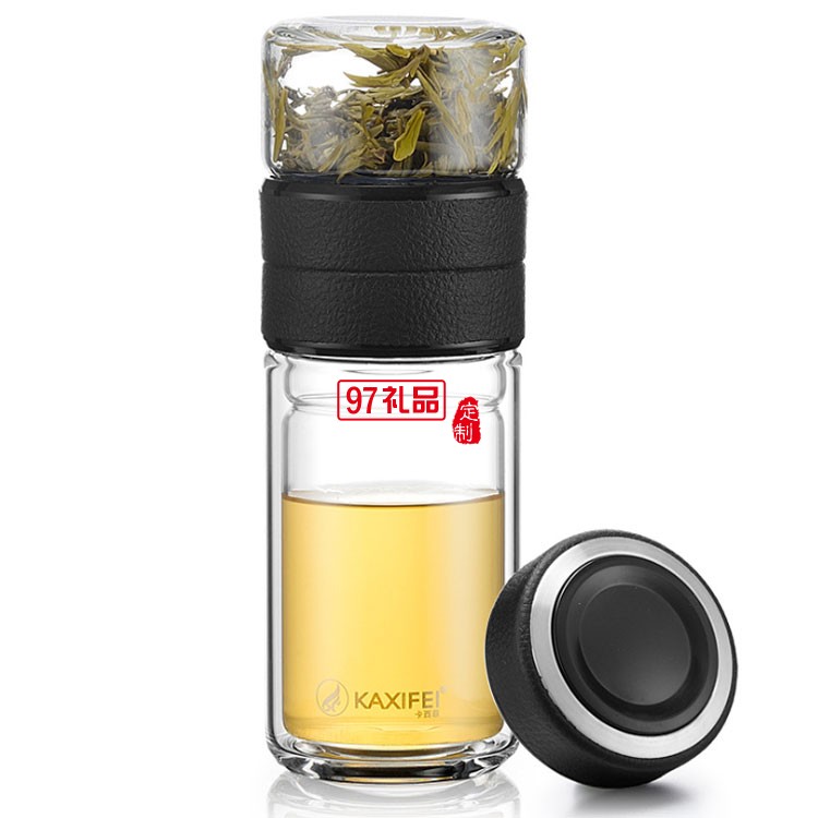茶水分離杯創(chuàng)意雙層玻璃杯商務(wù)泡茶杯可定制logo