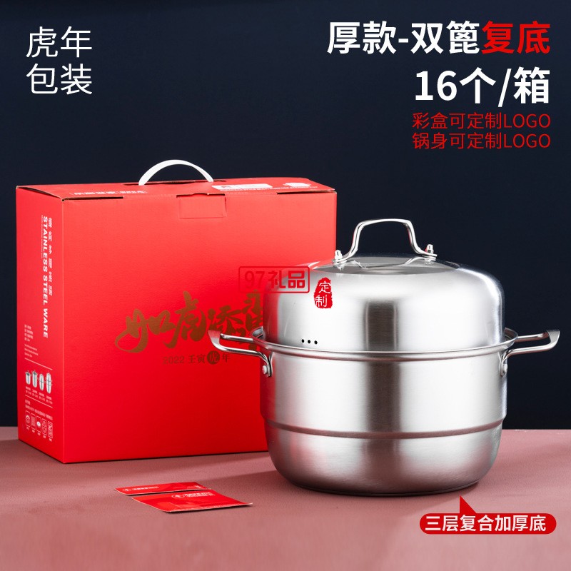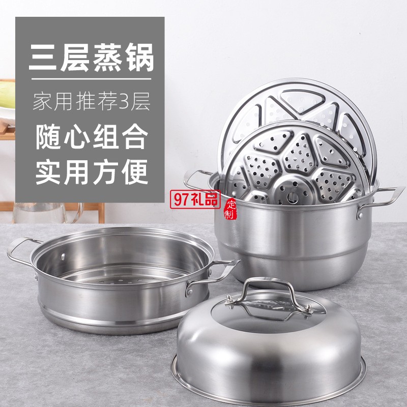 加厚不銹鋼鍋三層蒸鍋 復(fù)底雙層不銹鋼蒸鍋湯鍋實用禮品鍋具