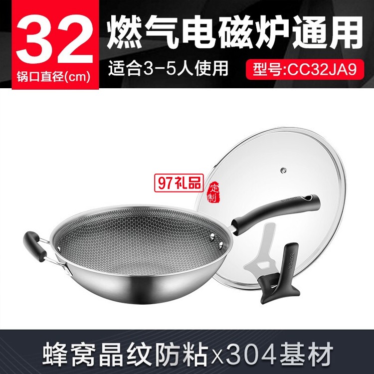 蘇泊爾炒鍋防粘鍋不銹鋼電磁爐炒菜鍋CC32JA9定制公司廣告禮品