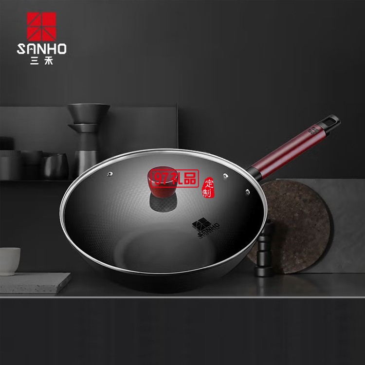 三禾 極鐵炒鍋32CM鐵鍋無(wú)涂層炒菜鍋TC32G1定制公司廣告禮品