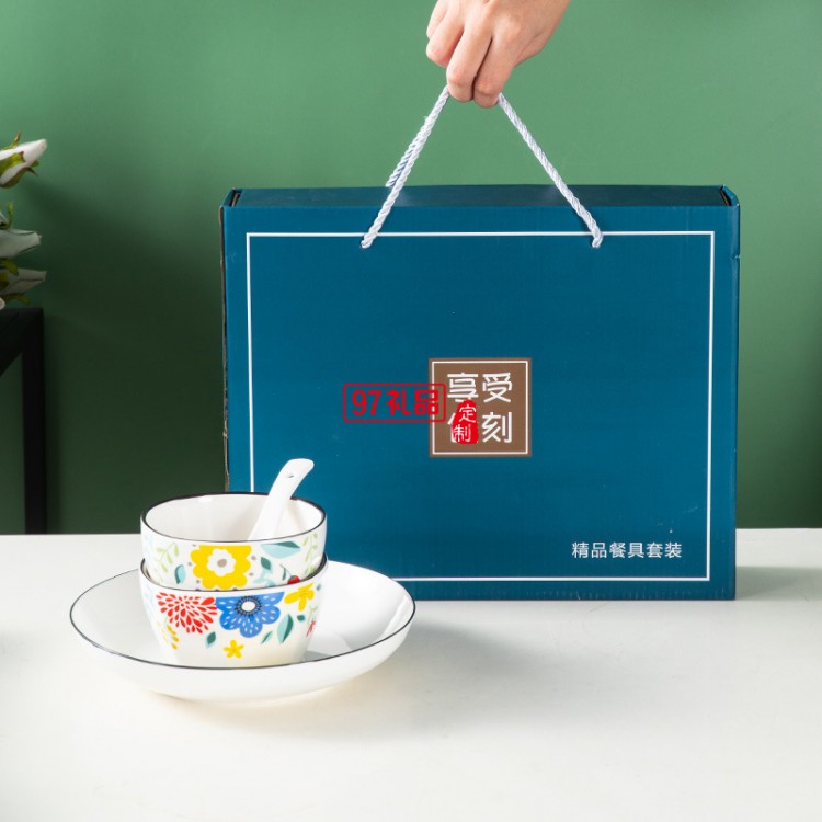 陶瓷餐具套裝小配頭禮盒裝 碗勺碗筷套裝禮品碗定制LOGO活動(dòng)小禮品