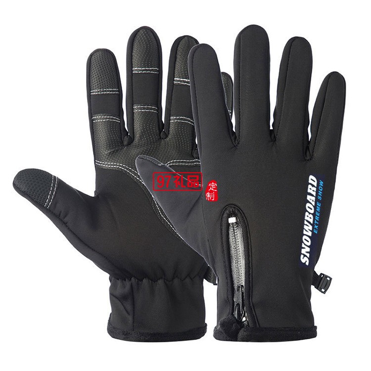 定制觸屏手套冬季騎行防風防水拉鏈男女戶外滑雪活動小禮品