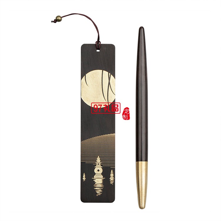 紅木質(zhì)鏤空雕刻古風(fēng)書簽簽字筆書簽套裝