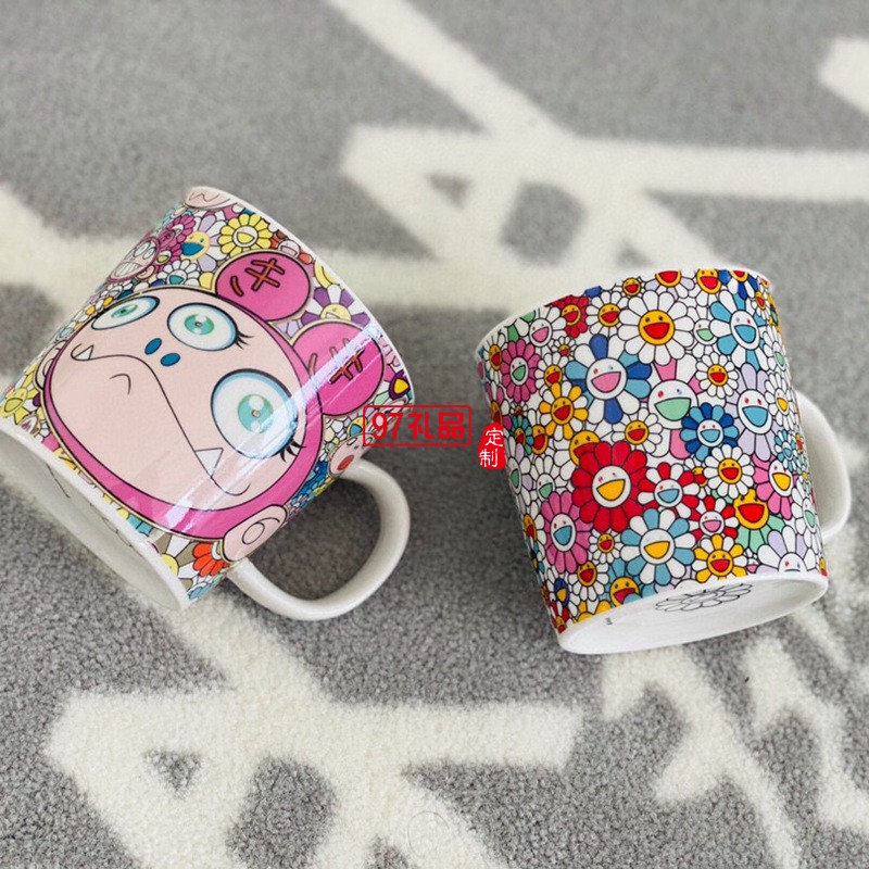 日本村上隆太陽(yáng)花馬克杯限定版兔子餐盤餐具套裝禮盒2杯2盤碟