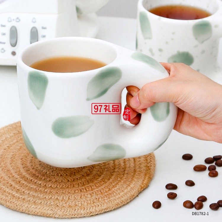 定制手繪陶瓷杯創(chuàng)意卡通潑墨馬克杯ins風胖胖咖啡杯
