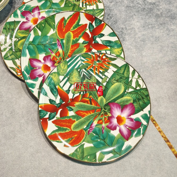 HERME愛馬歐式熱帶雨林系列36頭骨瓷餐具套裝禮盒描金中西式骨瓷