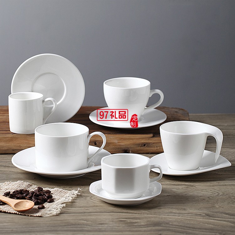 咖啡杯碟套裝 陶瓷創(chuàng)意 歐式咖啡杯純白 簡(jiǎn)約咖啡杯 可定制杯子