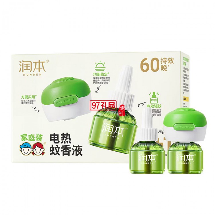 潤本電熱蚊香液: 法國道達(dá)爾溶劑,0.6%氯氟醚菊酯,45ml,4+1定時款