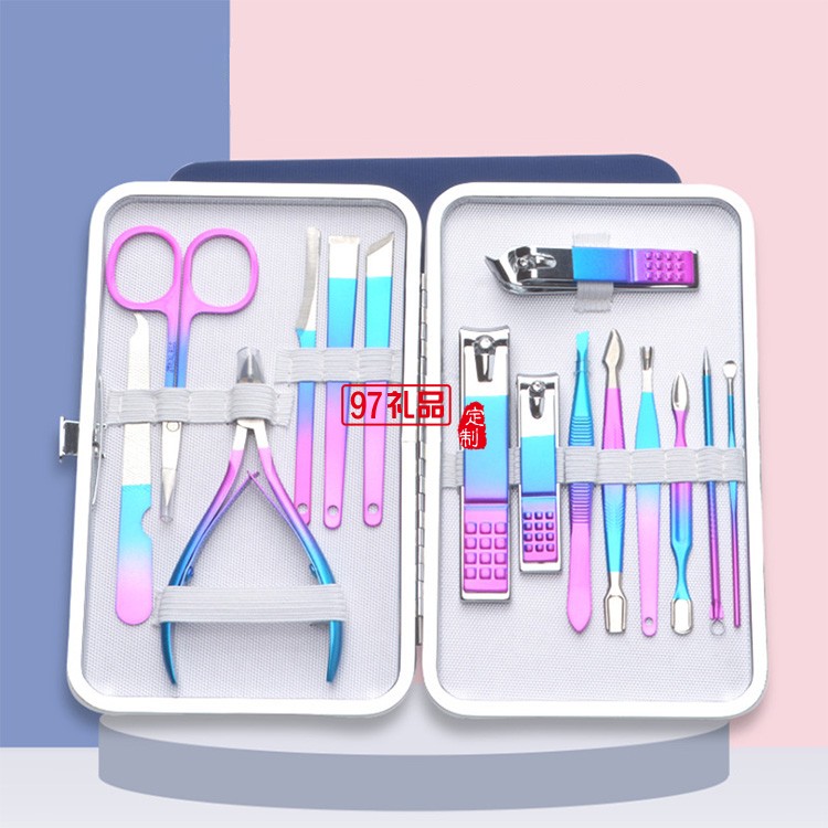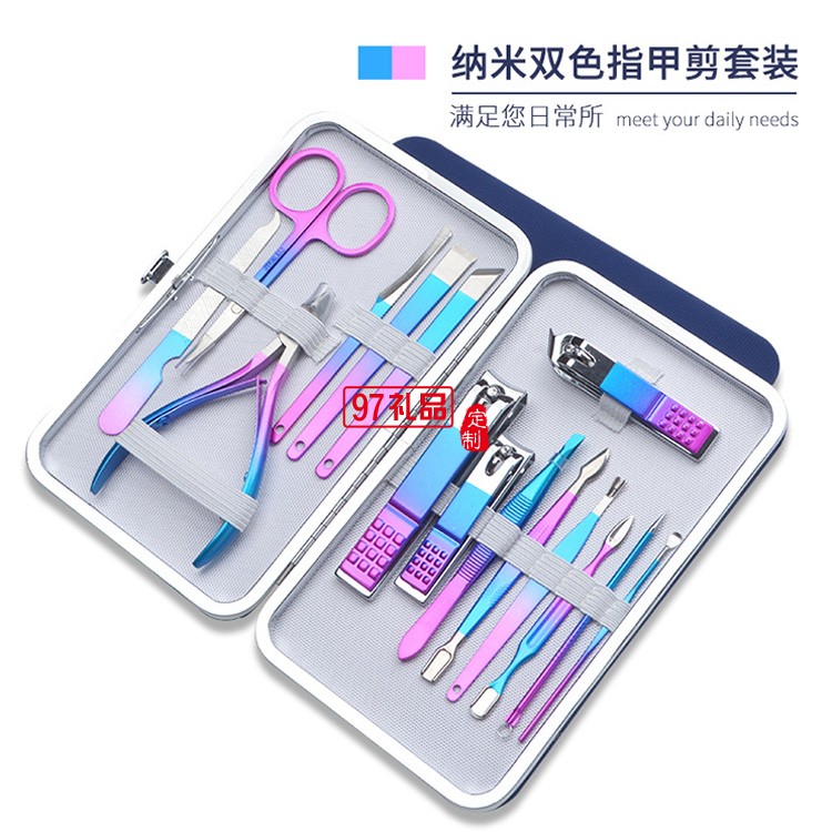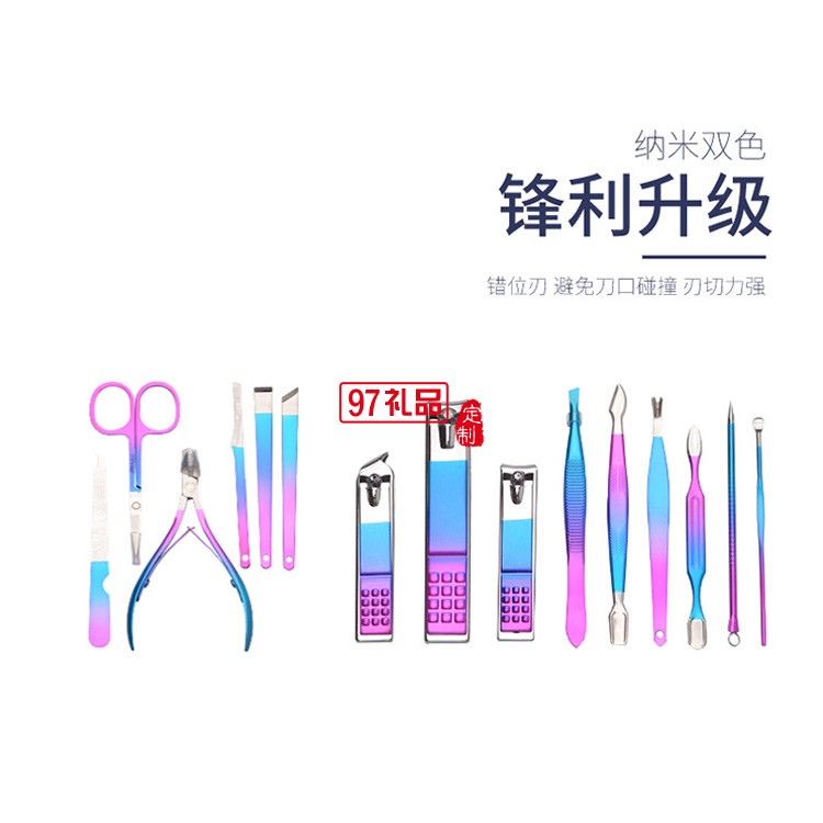 新品彩色彩鈦指甲刀納米雙色指甲剪修腳刀15件套裝