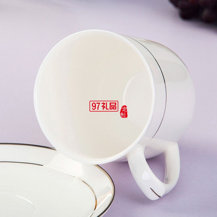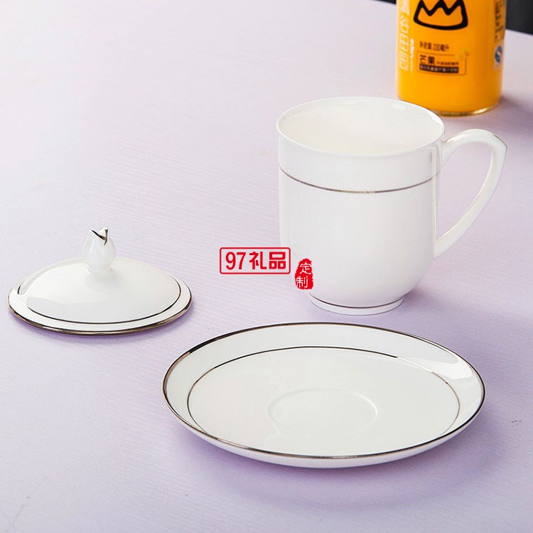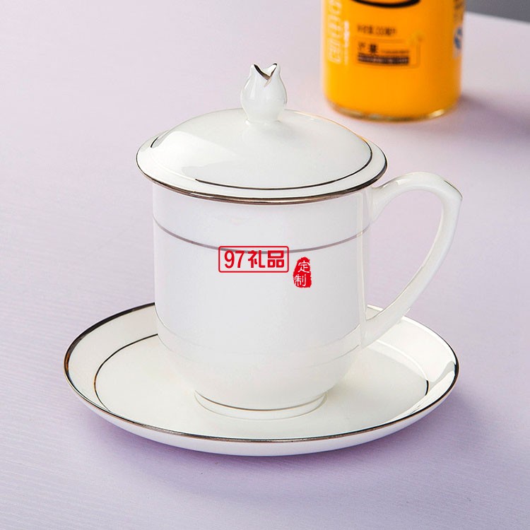景德鎮(zhèn)骨瓷杯陶瓷茶具酒店會議杯定制家用帶蓋水杯描金邊茶杯
