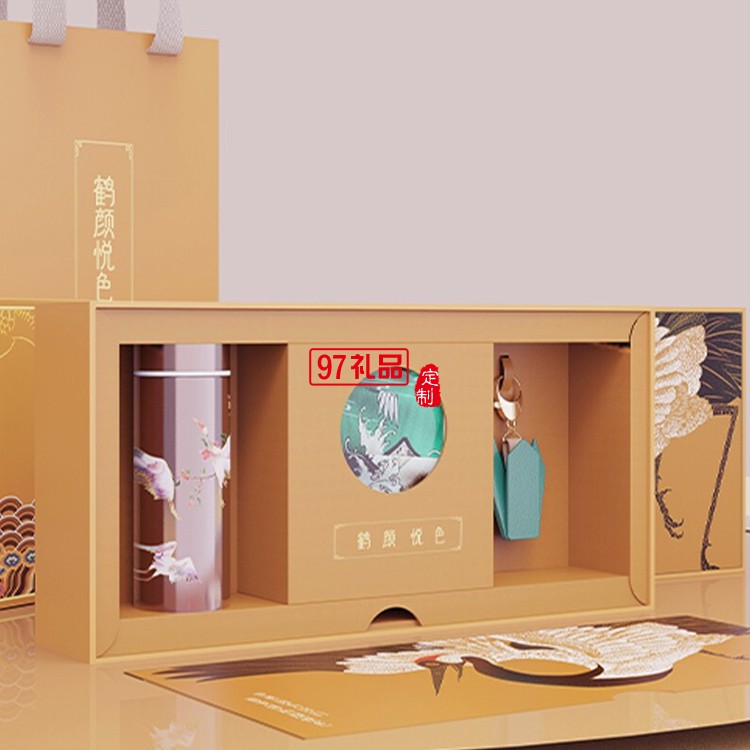 國風(fēng)鶴顏悅色保溫杯 絲巾 千紙鶴鑰匙扣禮盒