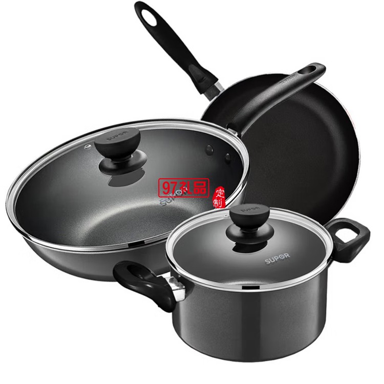 蘇泊爾炫彩不粘三件套鍋具炒鍋煎鍋湯鍋TP1617K定制公司廣告禮品