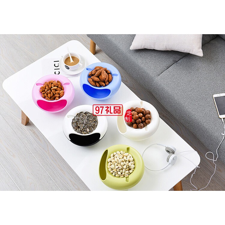 桌面創(chuàng)意懶人垃圾桶塑料雙層客廳臥室可置手機果盤瓜子盤