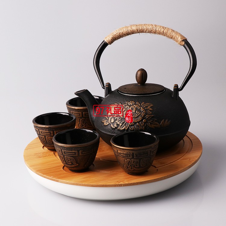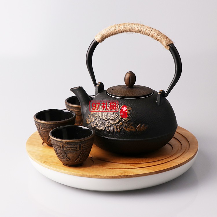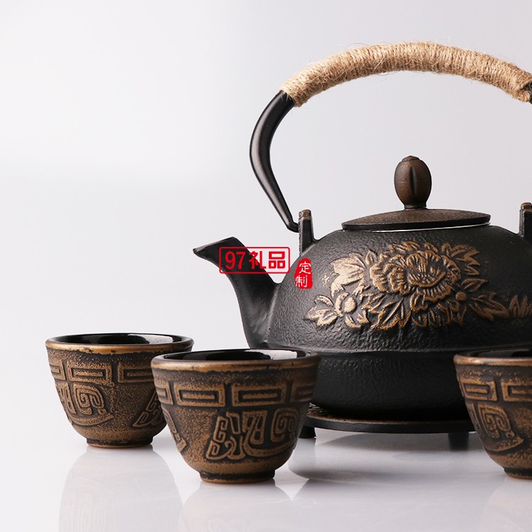 翻砂鐵壺+四個(gè)中鐵杯+墊叉包裝 定制茶具 定制logo