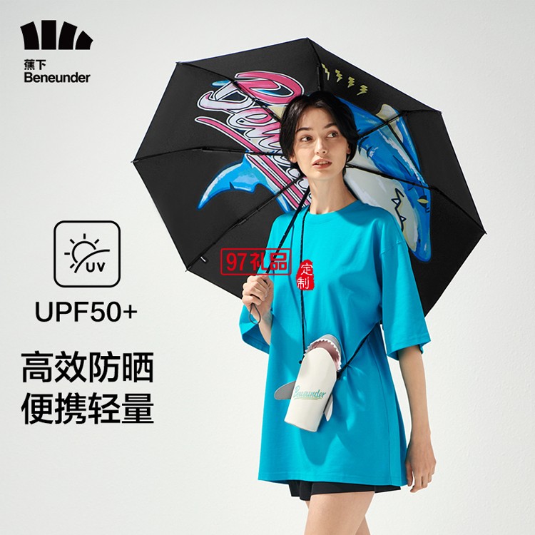 國潮鯊氏比太陽傘女黑膠遮陽防曬晴雨兩用超輕鯊魚包傘定制公司廣告禮品