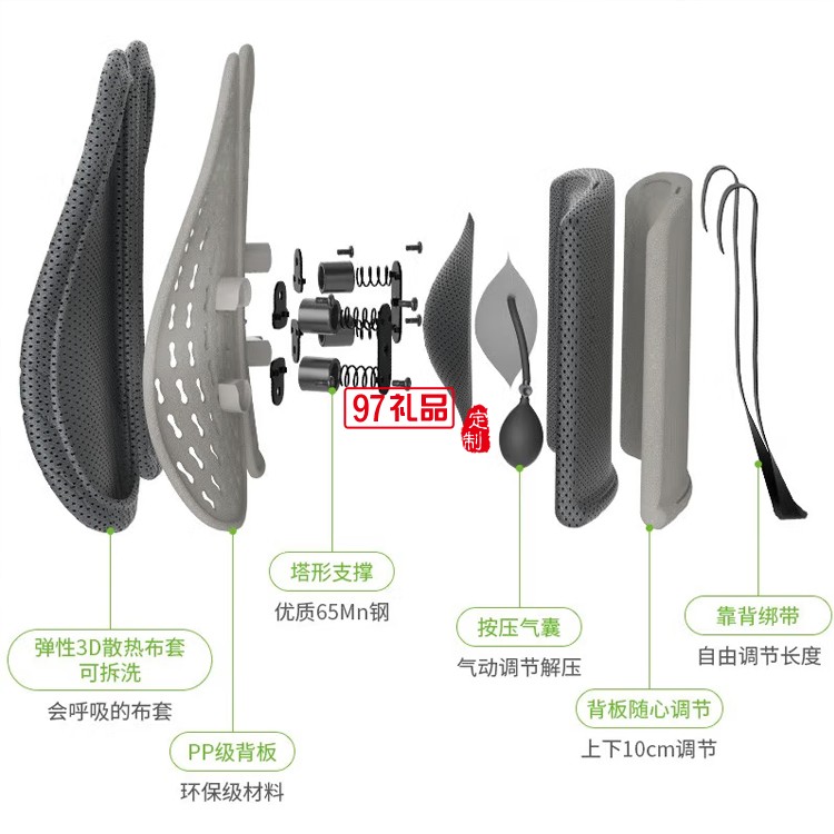 米喬人體工學(xué)腰墊腰靠靠墊辦公室氣動(dòng)版定制公司廣告禮品