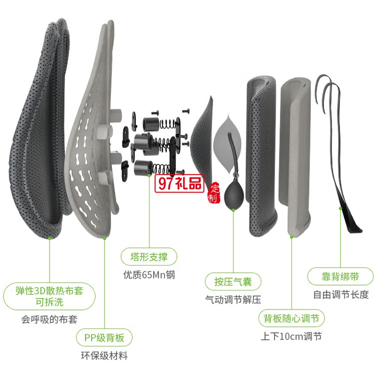 材質(zhì):PP級環(huán)保材質(zhì)+3D雙層透氣網(wǎng)布+TPU