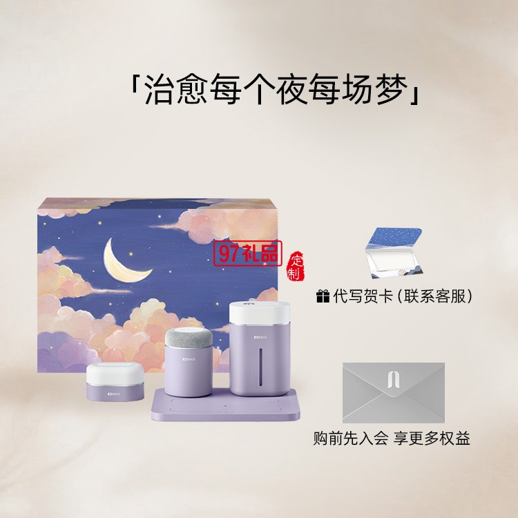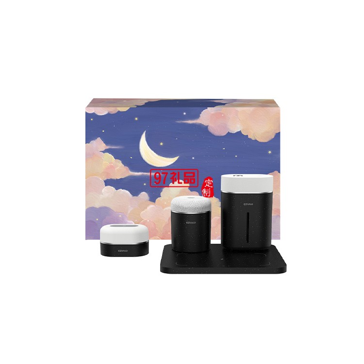 高端創(chuàng)意科技感禮品定制無線充電器+藍(lán)牙音箱+加濕器+拍拍燈四件套禮盒