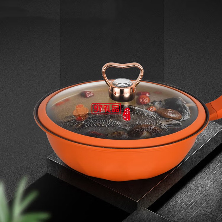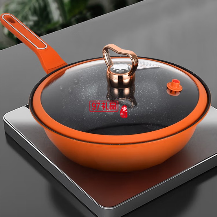 榮事達不粘微壓炒鍋RG-3218SN(C)帶蓋炒菜鍋定制公司廣告禮品