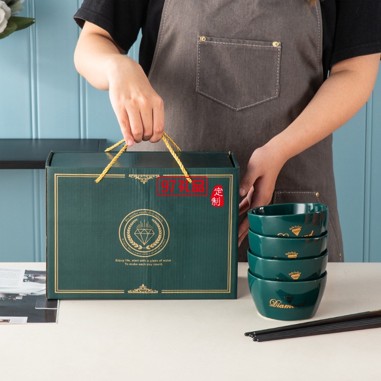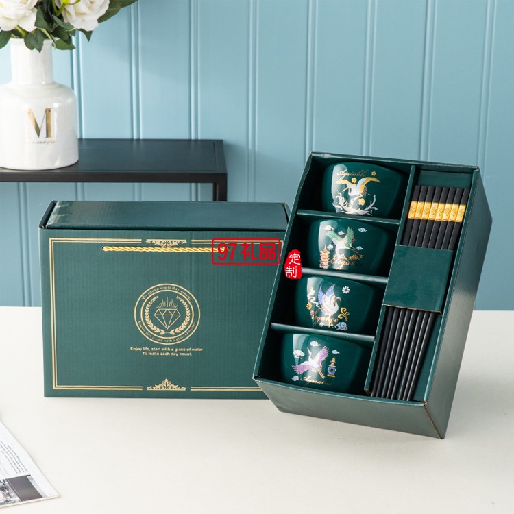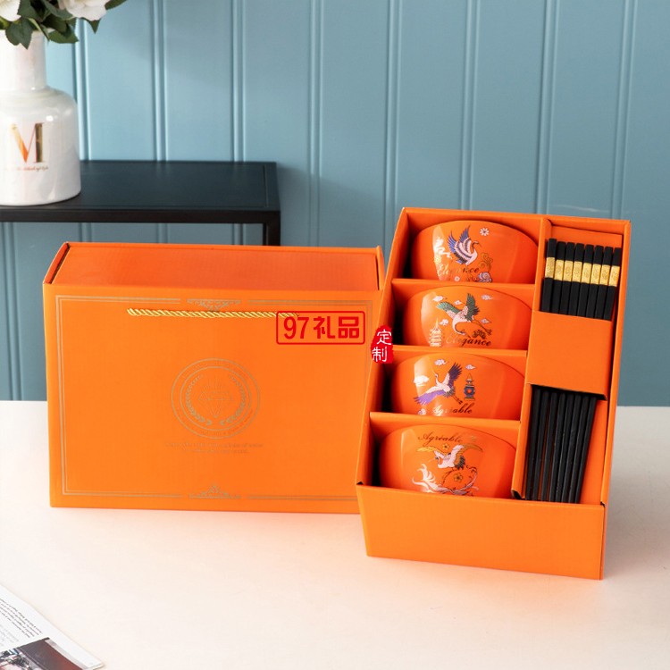 國潮風(fēng)開業(yè)活動禮品碗筷套裝方碗陶瓷餐具禮盒套裝碗