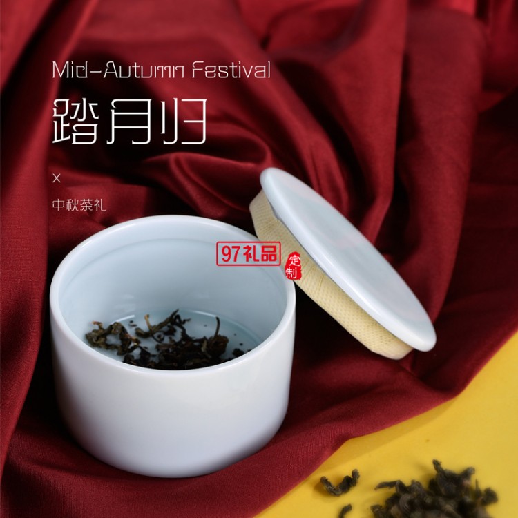 中秋禮品創(chuàng)意擺件踏月歸茶具套裝帶茶葉罐