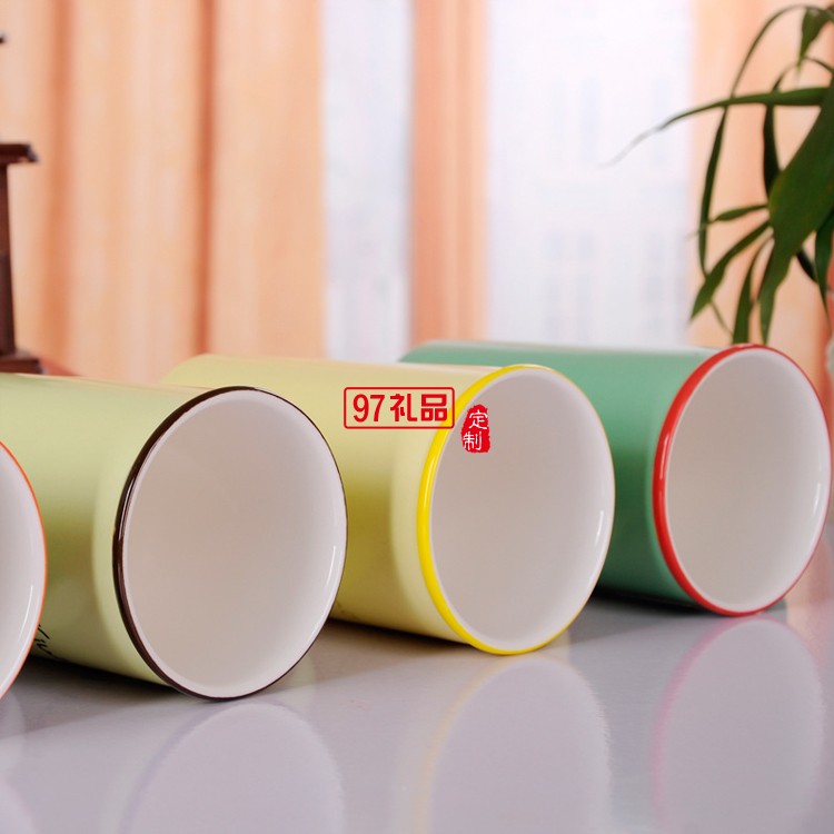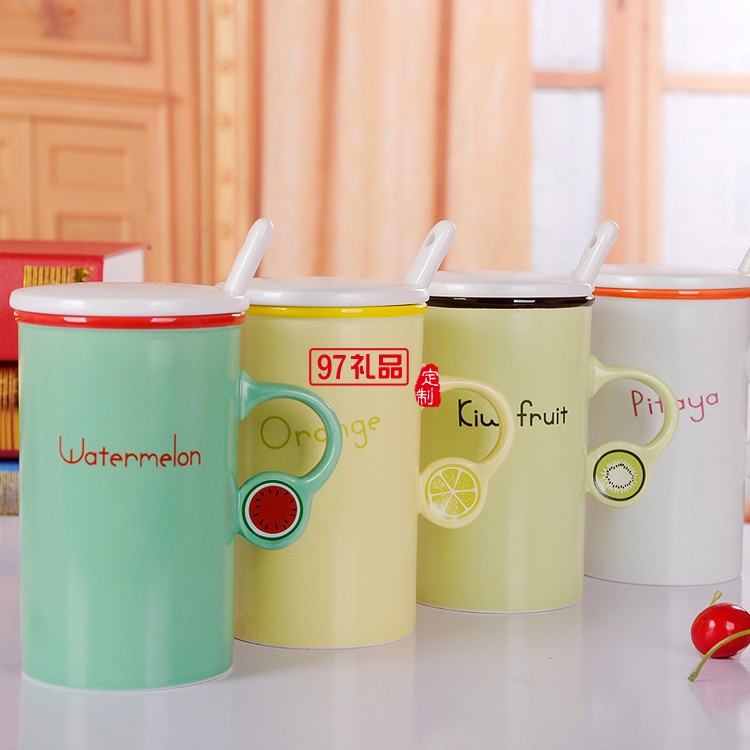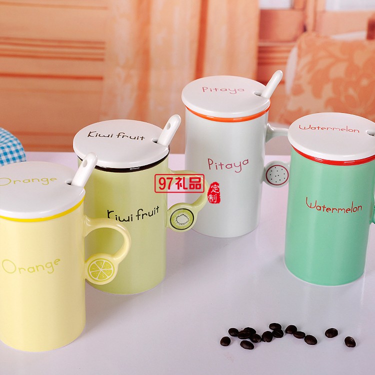 時(shí)尚水果色陶瓷杯 色釉把手陶瓷杯 可定制logo