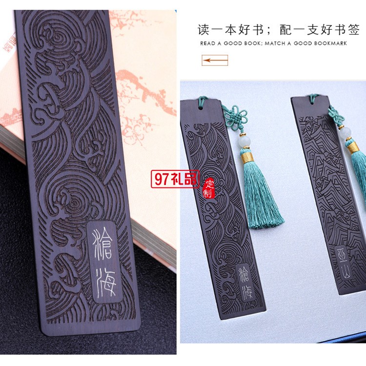 特色黑檀木對(duì)書簽 典雅木質(zhì)禮品 可加logo刻字 巫山滄海紫檀書簽