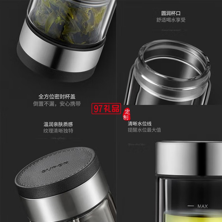 蘇泊爾茶水分離玻璃杯泡茶水杯禮盒裝 KC36JH10定制公司廣告禮品