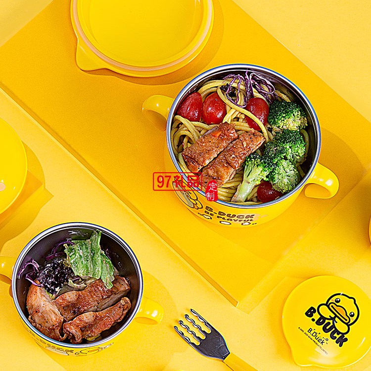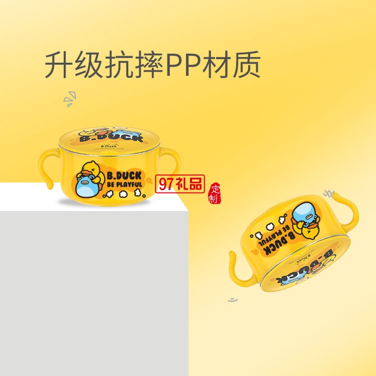 face小黃鴨寶寶輔食碗 嬰兒專用碗寶寶防摔吸盤輔食碗316不銹鋼碗