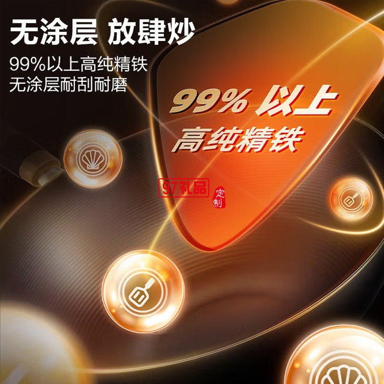 蘇泊爾鐵鍋有鈦無涂層炒鍋真不銹健康HC34A3定制公司廣告禮品