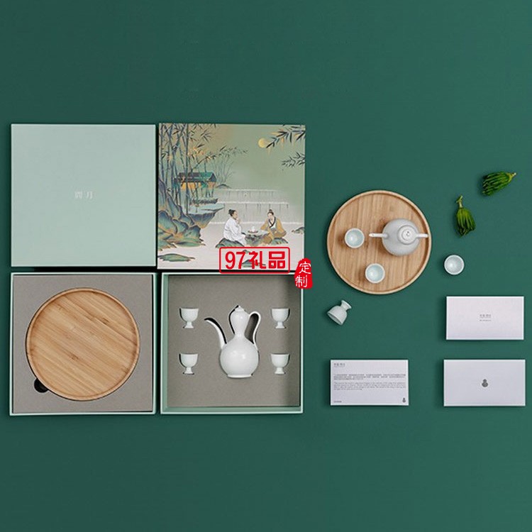 宋宴問月酒具套裝景德鎮(zhèn)陶瓷手工酒壺禮盒中秋節(jié)日禮品定制