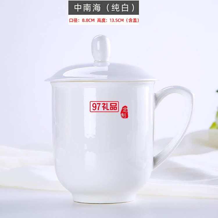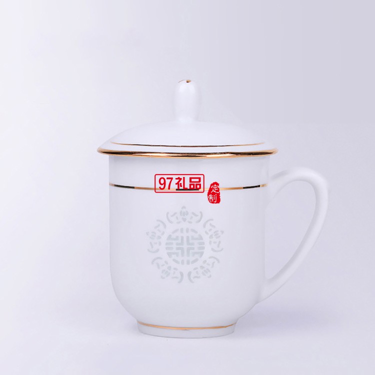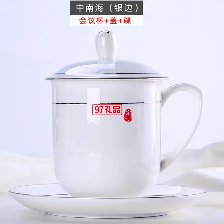 辦公杯批發(fā)景德鎮(zhèn)陶瓷杯帶蓋手工描金水杯會(huì)議杯碟骨瓷茶杯可定制
