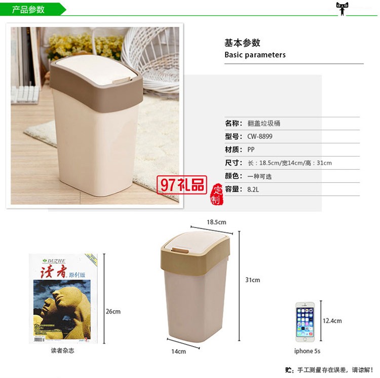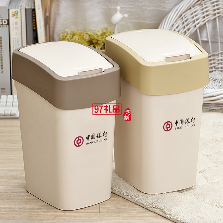 中國(guó)銀行定制創(chuàng)意翻蓋垃圾桶家用客廳衛(wèi)生桶可定制logo