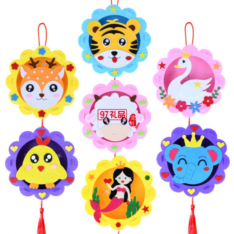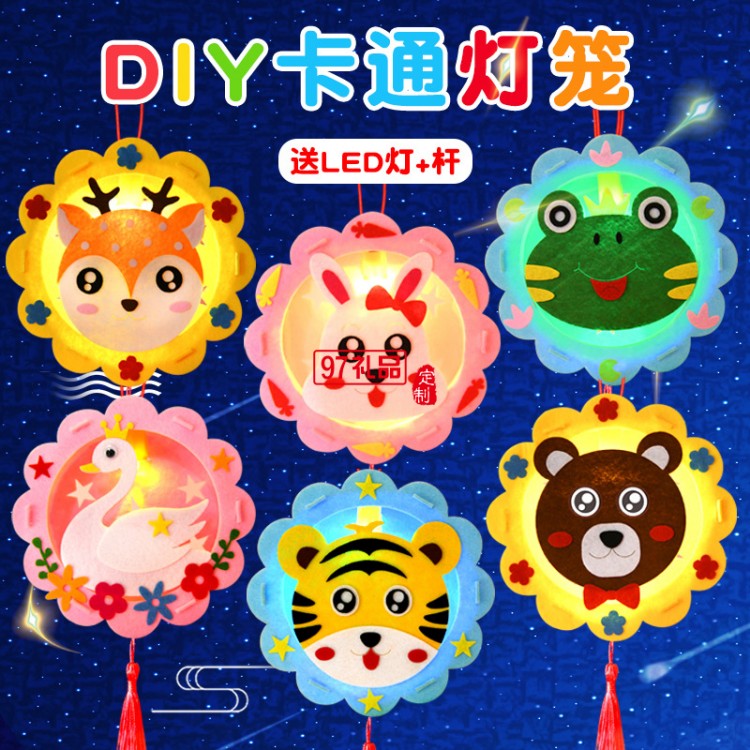 DIY卡通中秋節(jié)燈籠手提幼兒園手工發(fā)光燈籠兒童不織布材料包玩具