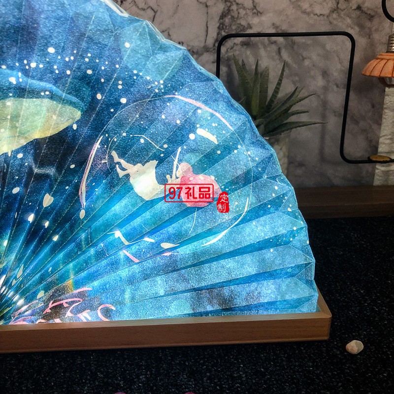 中秋禮品定制簡約實(shí)木氛圍床頭扇燈工廠批發(fā)企業(yè)禮品定制小夜臺燈