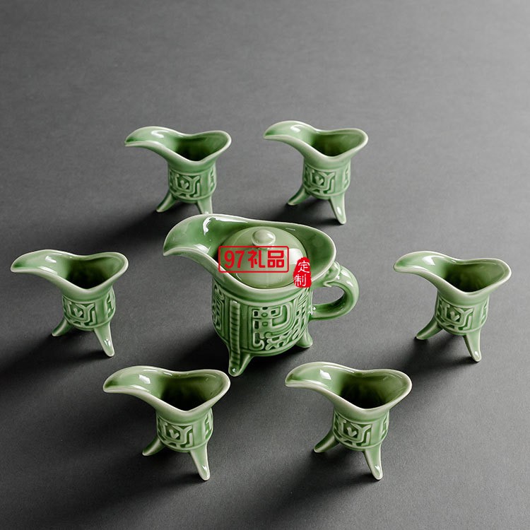 陶瓷酒樽酒杯家用酒具套裝仿古分酒器白酒黃酒清酒壺青瓷酒盅禮品