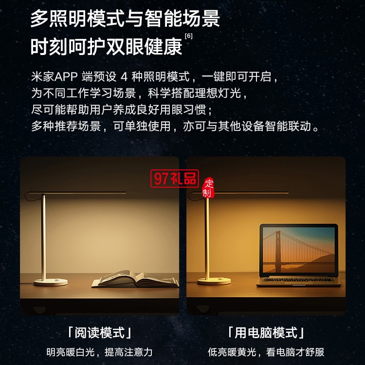 米家LED智能臺燈1S 臥室家用學(xué)生書桌折疊簡約床頭燈定制公司廣告禮品