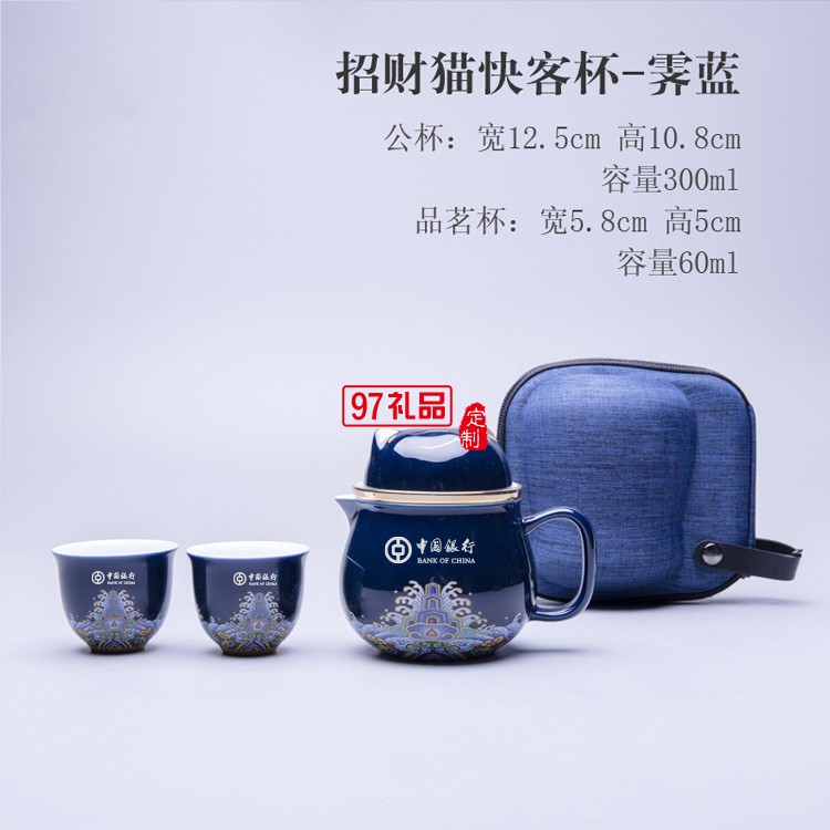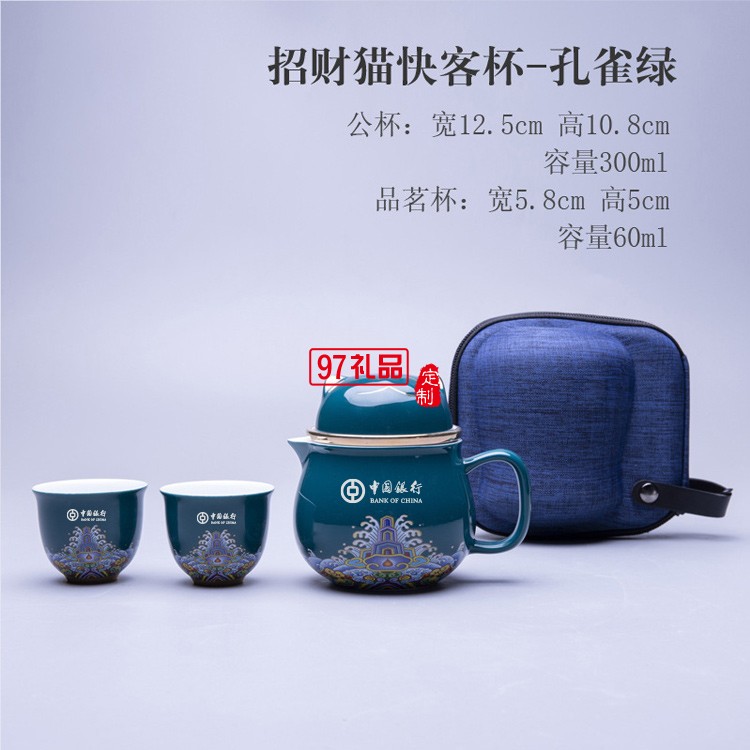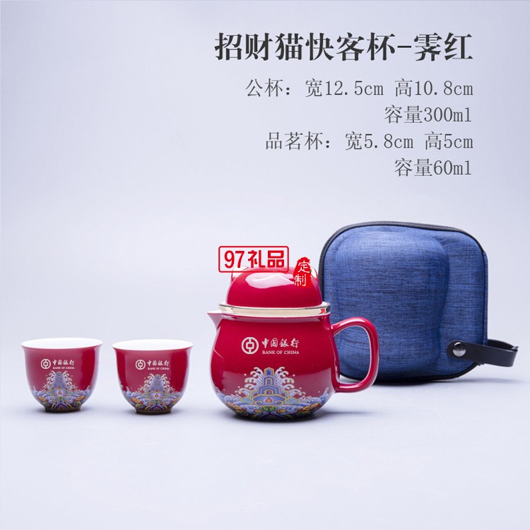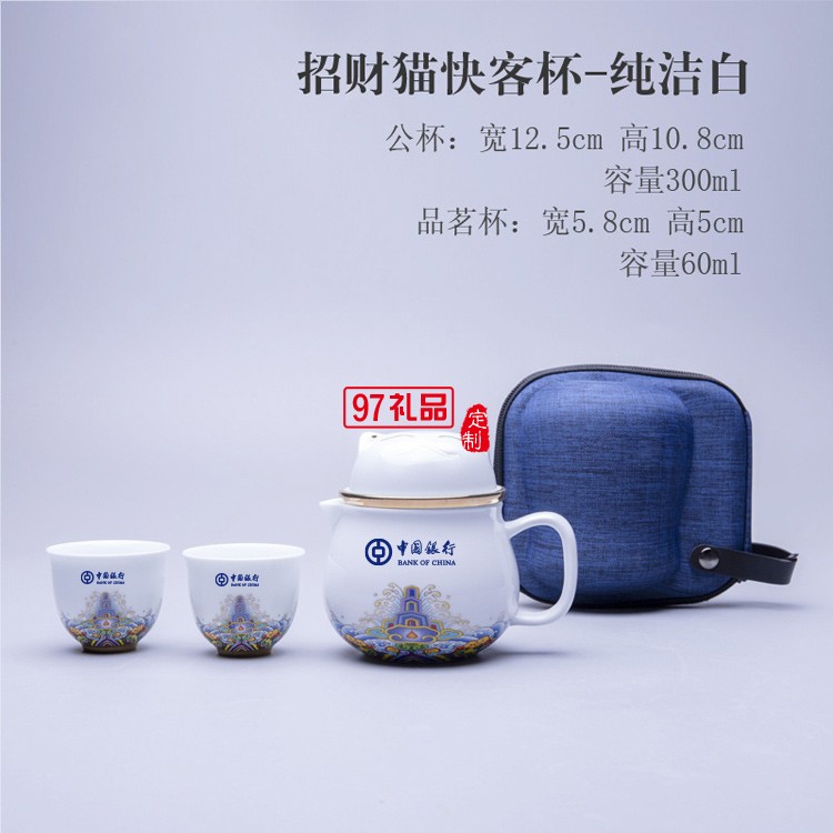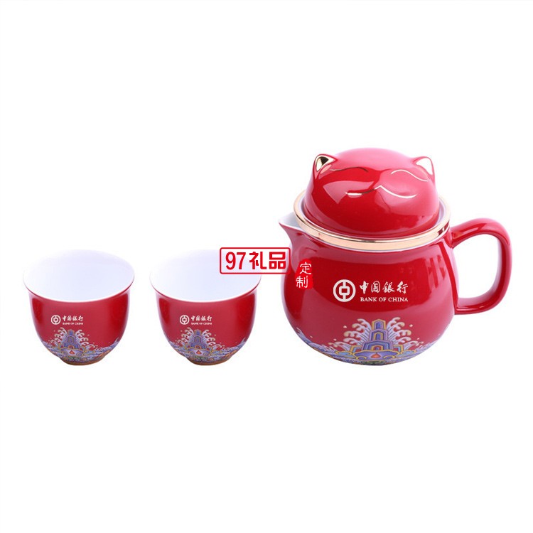 陶瓷辦公杯招財(cái)貓快客杯一壺兩杯旅行便攜茶具茶水分離